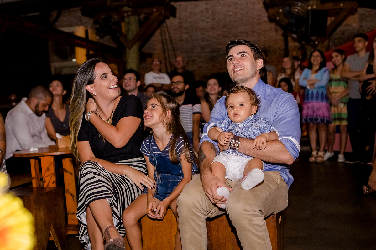 Dani e Renato optaram por um Espaço super exclusivo. Nada de brinquedos eletrônicos, tudo muito lúdico, tudo muito verdadeiro, paupável. Que buffet maravilhoso, que luz.